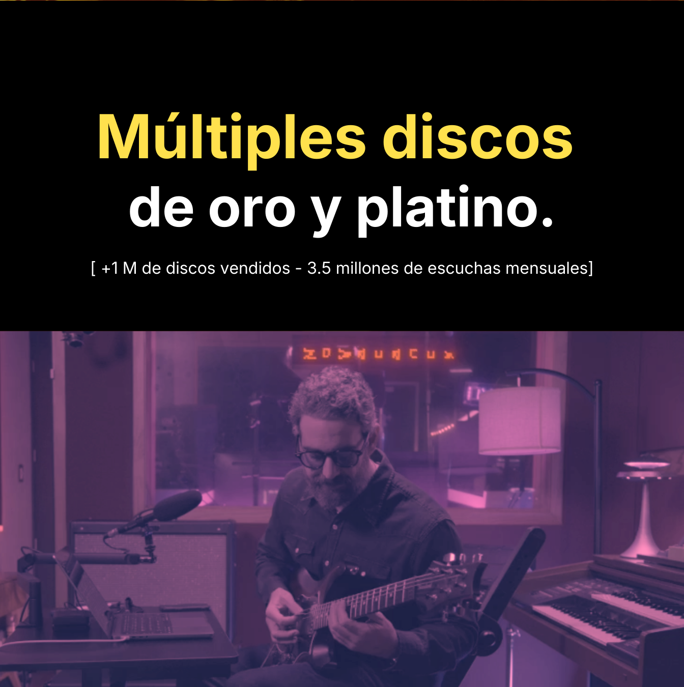 Soy guitarrista con 20 años de experiencia en los escenarios más Importantes, del mundo, con amplia trayectoria en producción . A través del sonido y la sensibilidad he buscado conectar, crecer y aportar a la música desde la honestidad y la pasión por el instrumento.
